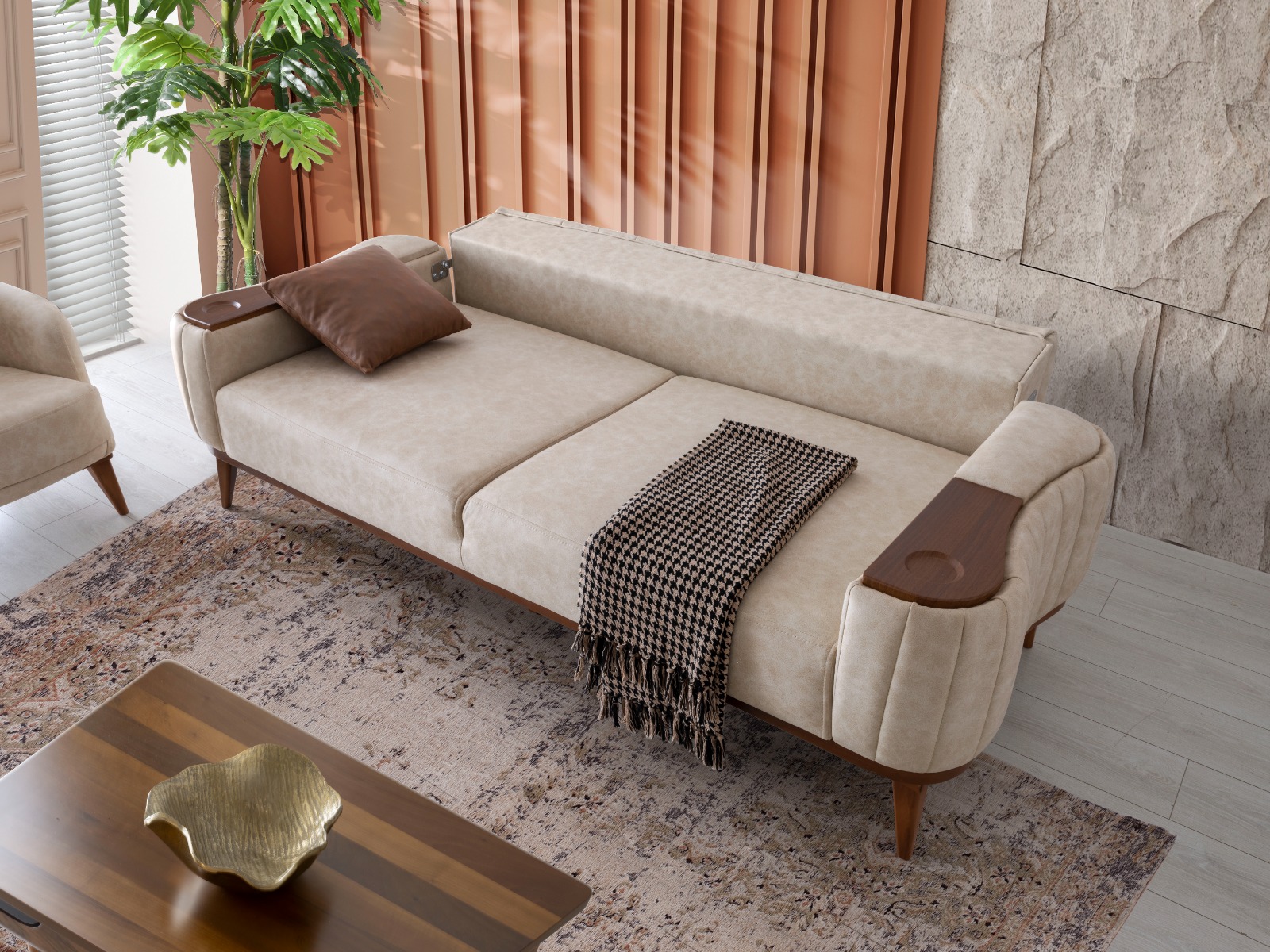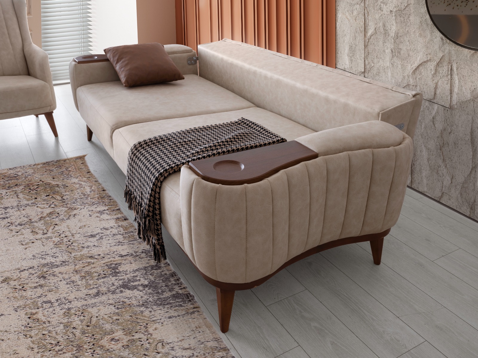 Materyal Fırınlanmış gürgen iskelet, yüksek yoğunluklu HR sünger ve leke tutmayan, kolay temizlenebilir premium döşemelik kumaştan üretilmiştir.
