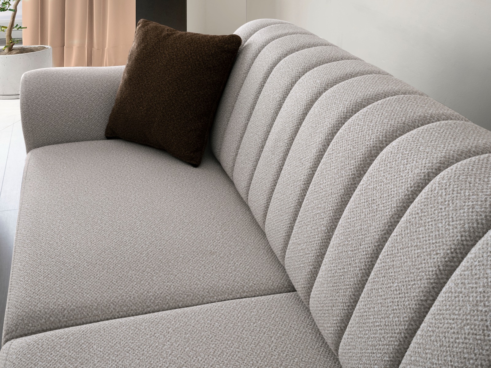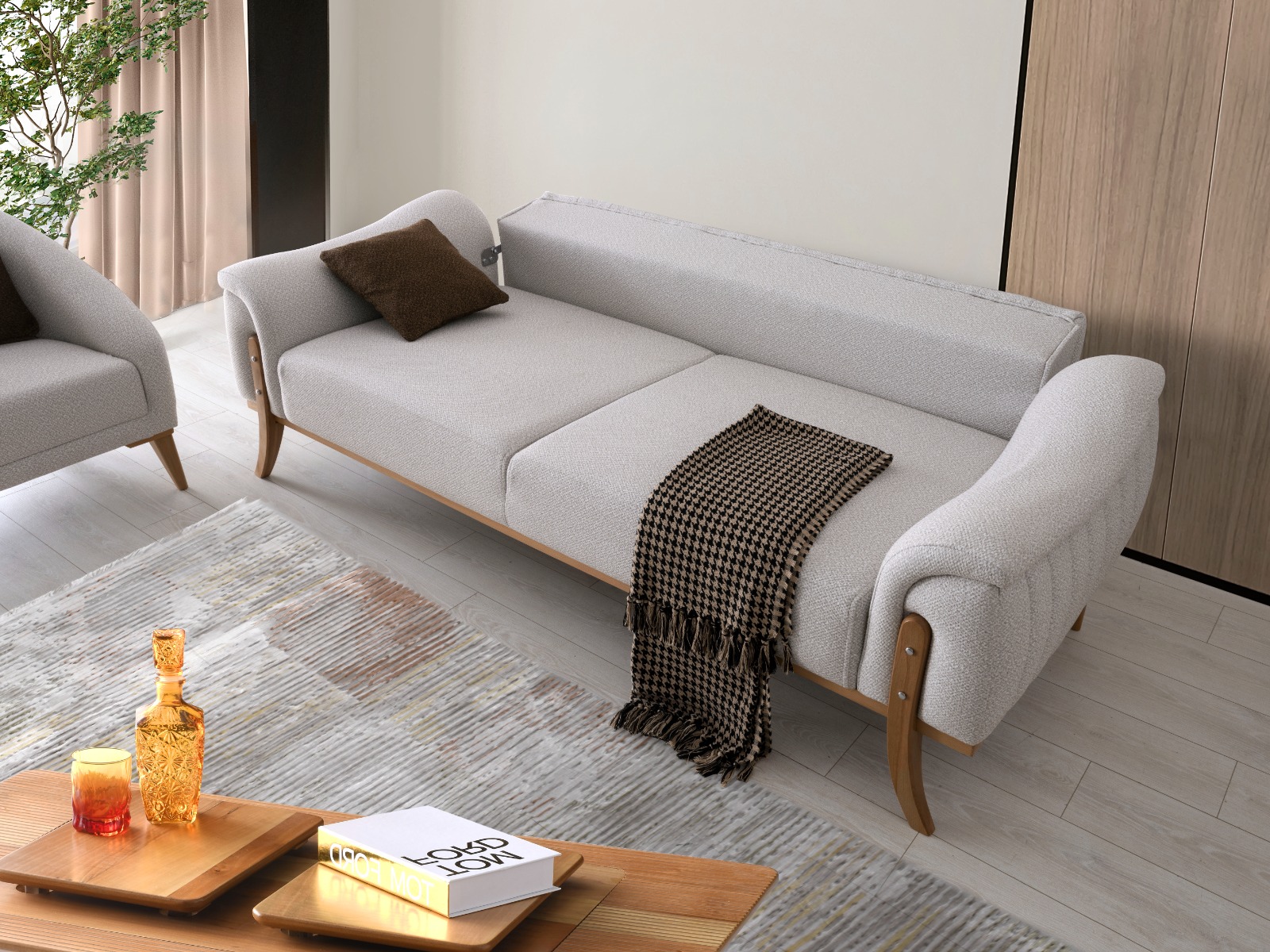 Materyal Fırınlanmış gürgen iskelet, yüksek yoğunluklu HR sünger ve leke tutmayan, kolay temizlenebilir premium döşemelik kumaştan üretilmiştir.