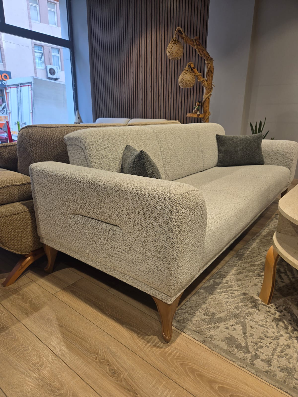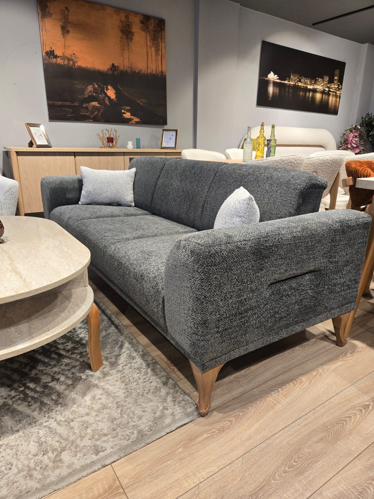 Materyal Fırınlanmış gürgen iskelet, yüksek yoğunluklu HR sünger ve leke tutmayan, kolay temizlenebilir premium döşemelik kumaştan üretilmiştir.