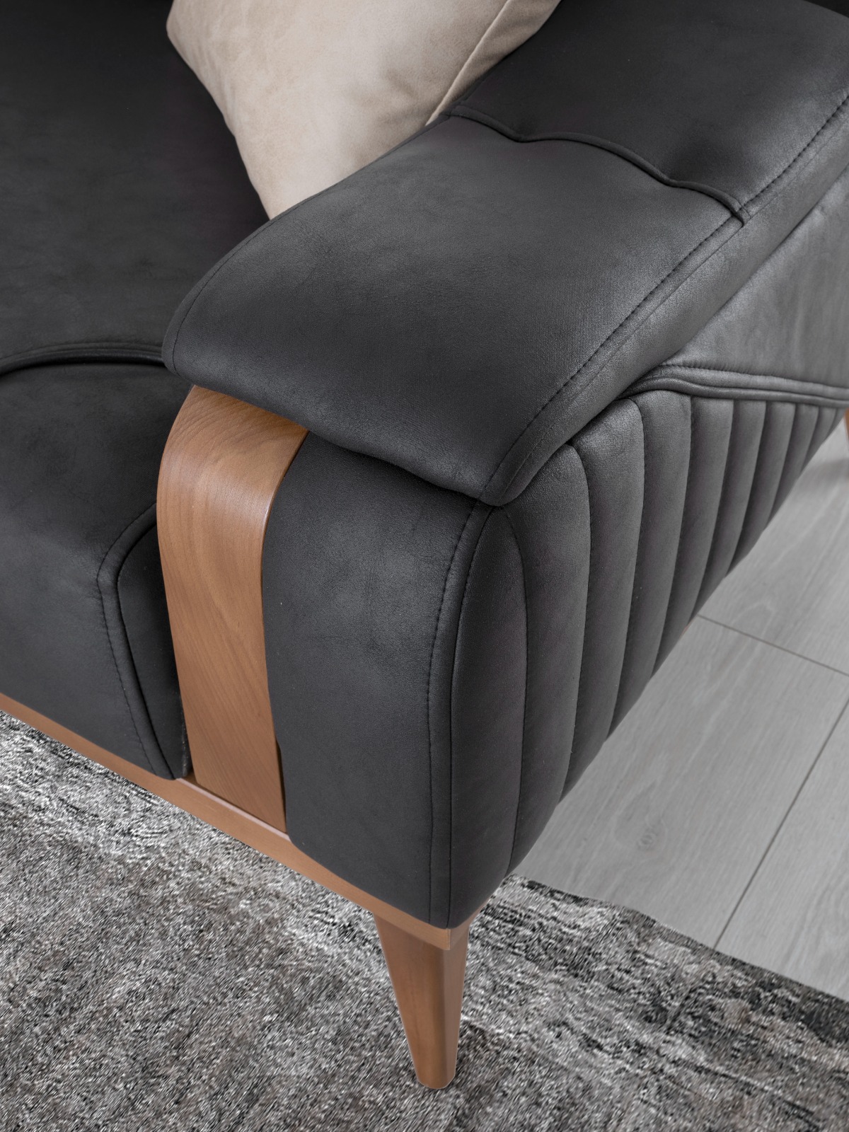Materyal Fırınlanmış gürgen iskelet, yüksek yoğunluklu HR sünger ve leke tutmayan, kolay temizlenebilir premium döşemelik kumaştan üretilmiştir.