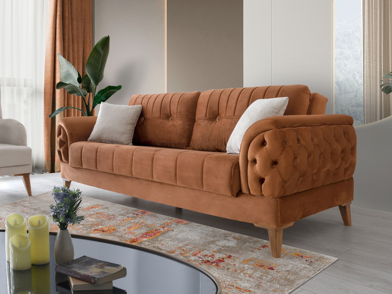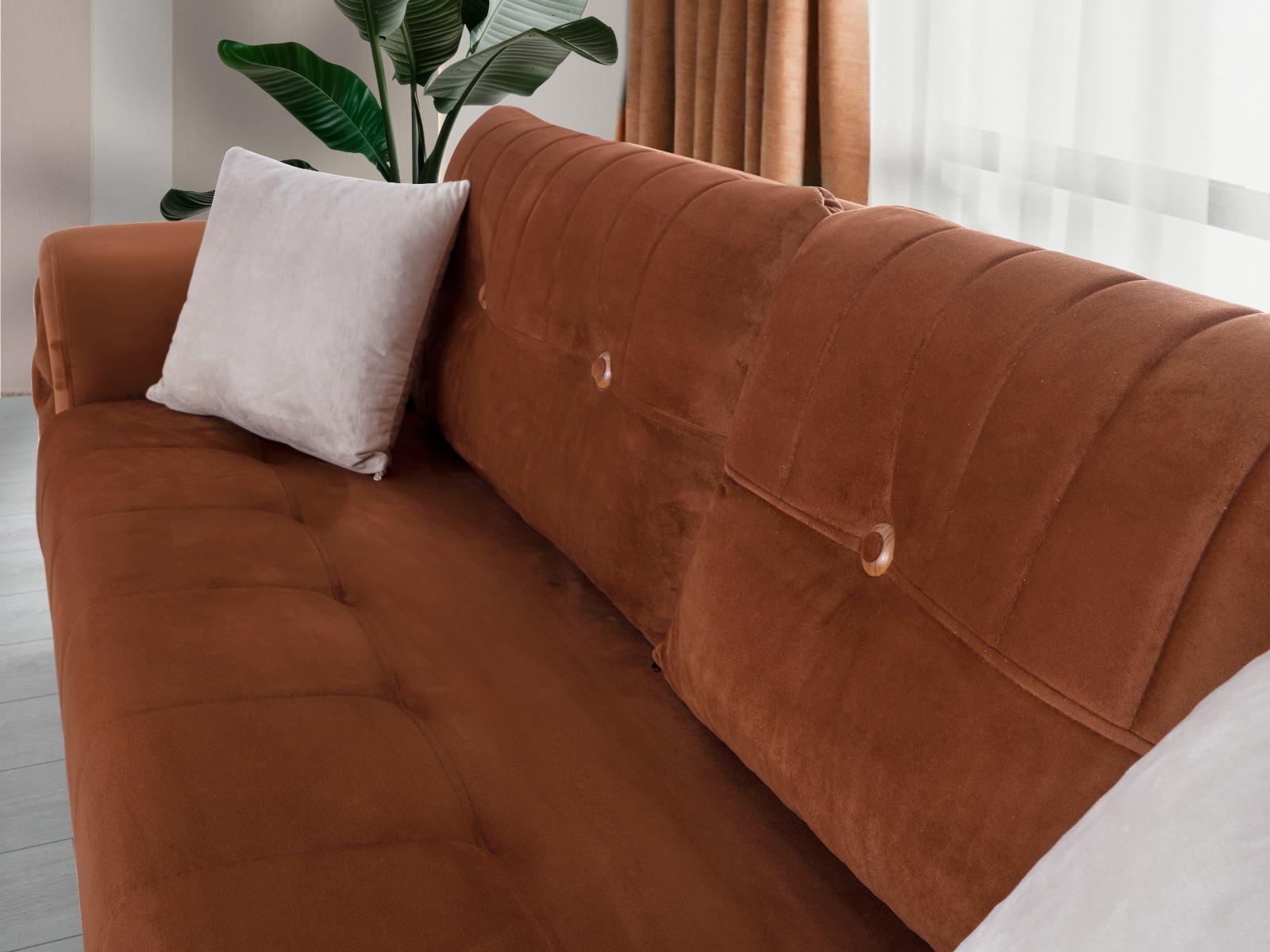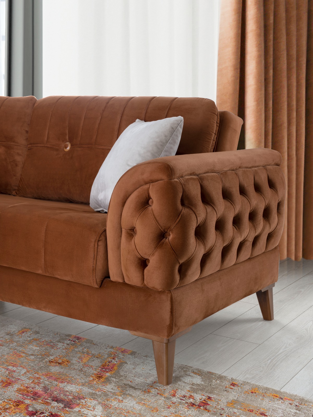 Materyal Fırınlanmış gürgen iskelet, yüksek yoğunluklu HR sünger ve leke tutmayan, kolay temizlenebilir premium döşemelik kumaştan üretilmiştir.